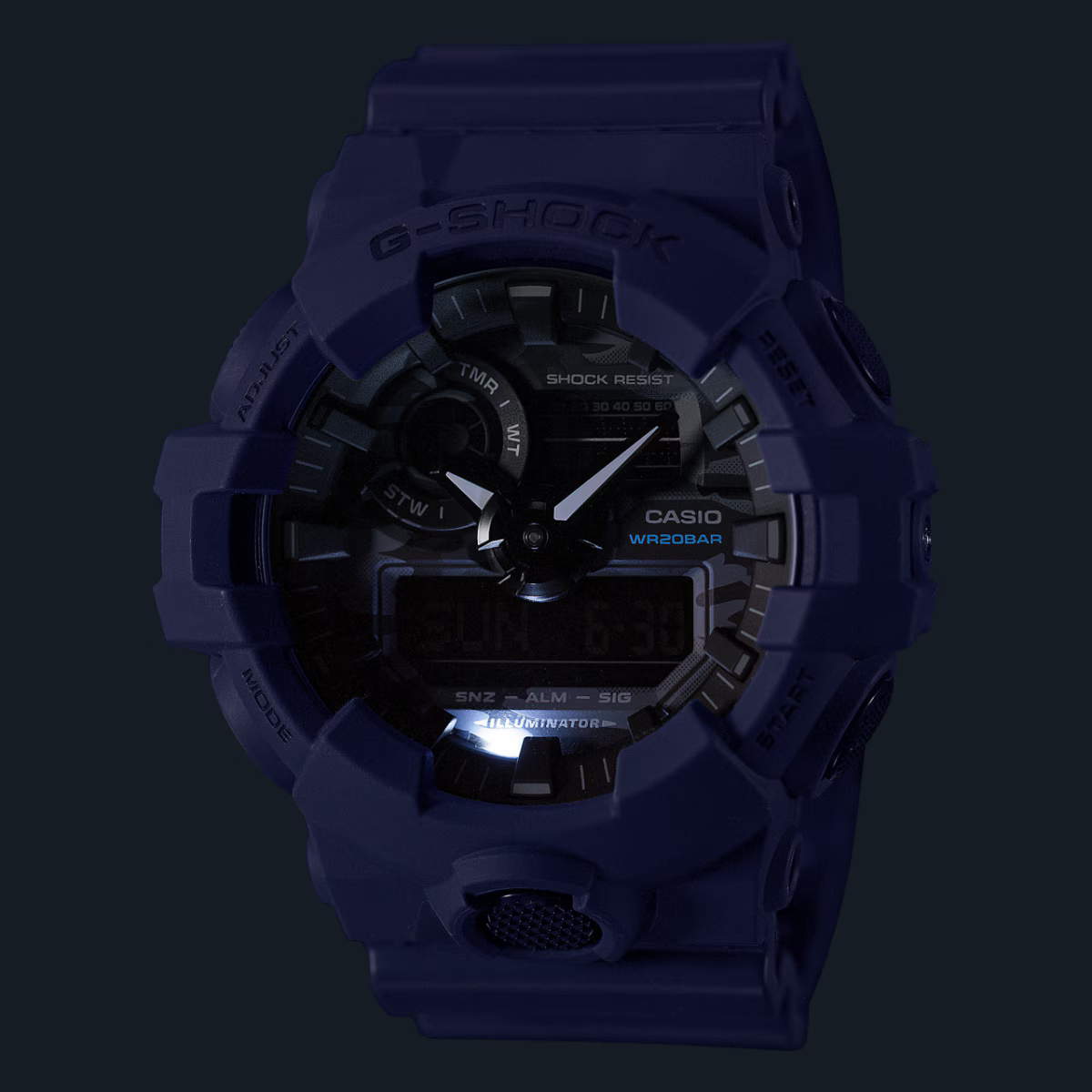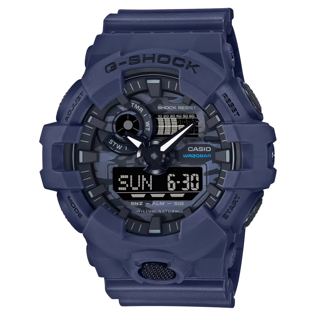 12/24-hour formatHand shift feature (Hands move out of the way to provide an unobstructed view of digital display contents.)Regular timekeeping: Analog: 2 hands (hour, minute (hand moves every 20 seconds)) Digital: Hour, minute, second, pm, month, date, day