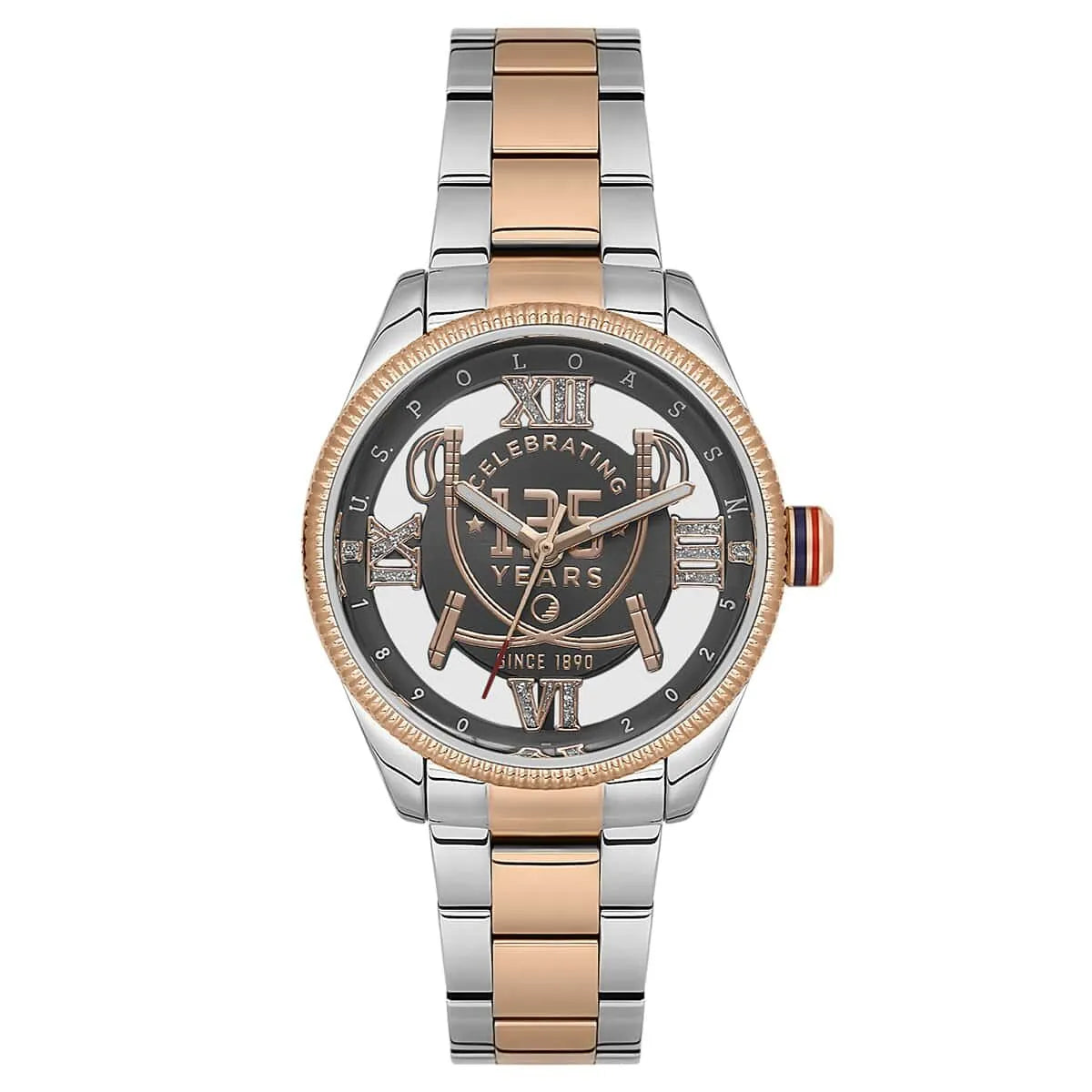 Celebrate timeless style with the U.S. Polo Assn. 135 Years Anniversary Edition Women’s Watch (USPA2120-03). Featuring a sophisticated rose gold and silver-toned case paired with a sleek black dial, this elegant timepiece adds a refined touch to any outfit. Designed for women who appreciate both fashion and function, it blends classic design with modern charm for everyday wear or special occasions.