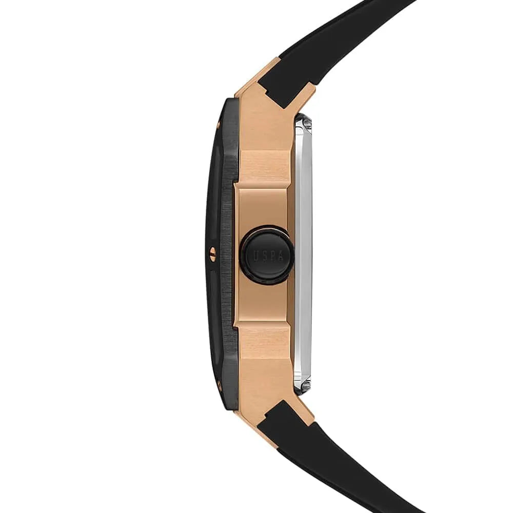 The U.S. Polo Assn. Automatic Watch USPA1122-05 combines sporty style with elegant design. Featuring a black silicone strap for comfortable all-day wear and a striking rose gold case, this timepiece adds a modern touch to any outfit. Part of the new collection, it offers reliable automatic movement, ensuring you stay on time with ease and confidence. Perfect for those who appreciate both durability and refined aesthetics.