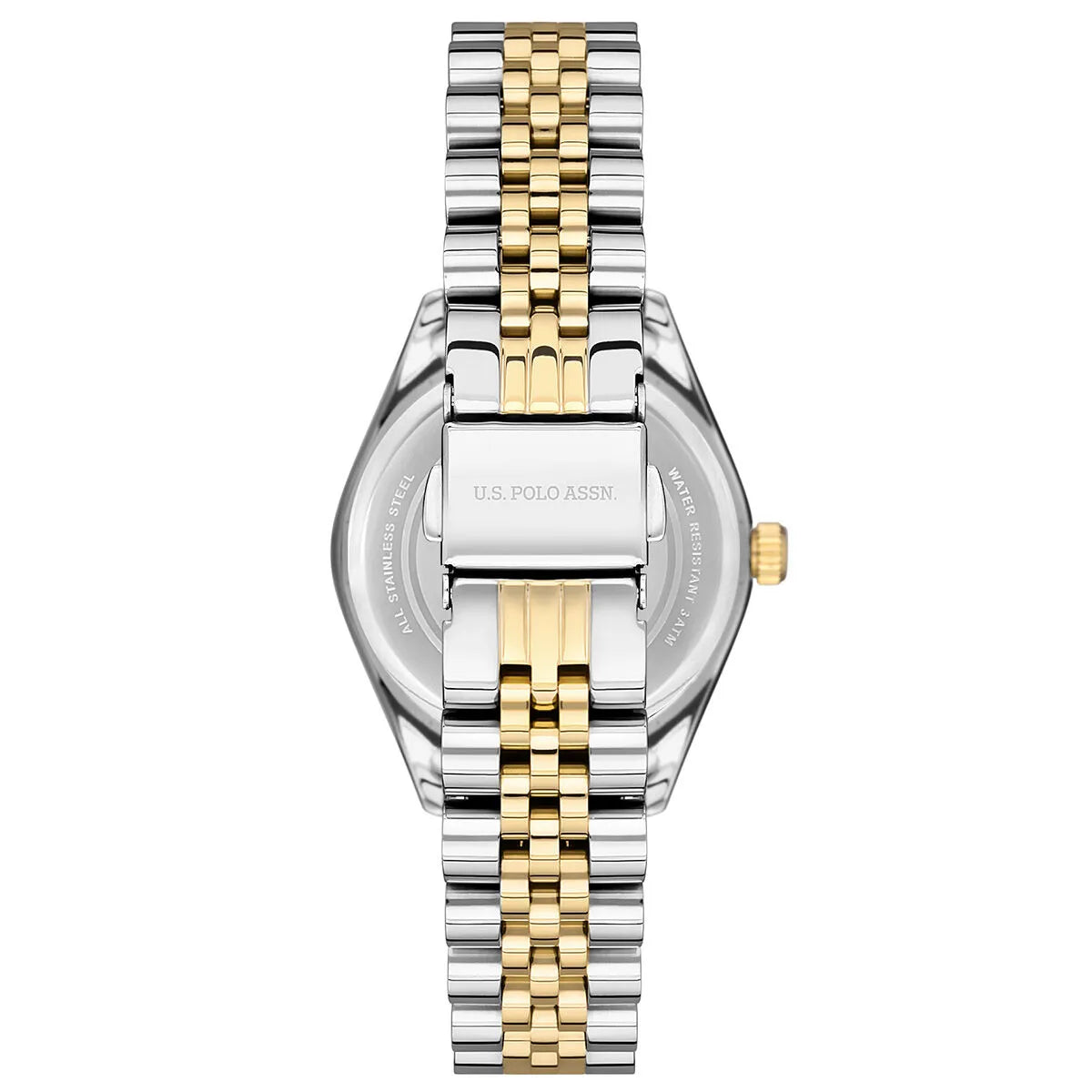 The U.S. Polo Assn. Watch USPA2045-04 features a sophisticated blend of gold and silver tones, complemented by a striking green dial. This stylish watch is designed to enhance your everyday look while offering reliable timekeeping. Perfect for those who appreciate a touch of color in a classic accessory, it balances elegance with versatility for any occasion.